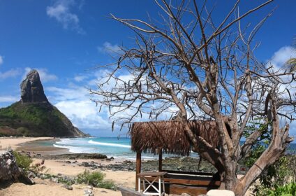 Petiscos e pratos contemporâneos, além de coquetéis e vista panorâmica, em espaço rústico e natural na praia.